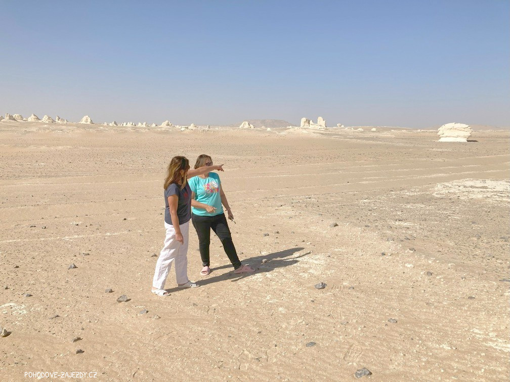 - den Odjezd z Káhiry do první oázy Bahariya. Ta se nachází v proláklině, obklopené vysokými, strmými svahy. Kdysi byla dnem obrovského oceánu a je vstupní branou do různých pouští, jako Černá poušť, Akabat, Křišťálová hora, Západní poušť, krápníková jeskyně Djara a Bílá poušť s monumenty z bílé křídy. V této oáze přespíme v beduínském kempu.
