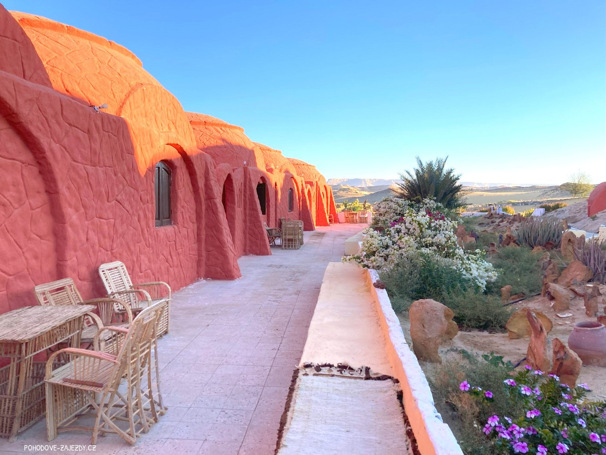 - den Naše cesta pokračuje náhorní plošinou k oáze Dakhla, která je položená v krásné krajině barevných kamenů a skalních formací. Večer nás čeká beduínský kemp s horkou sprchou.