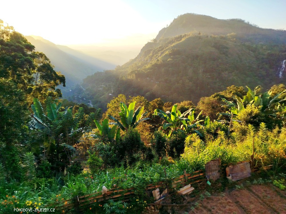 - 10. den: po snídani odjedeme na do vnitrozemí, do horského letoviska ELLA. To se nachází ve výšce 1.041 n.m., je obklopeno kopci pokrytými mlžnými lesy a čajovými plantážemi. Navštívíme CHRÁM DHOWA, 2.000 let starý skalní chrám, vodopády RAVANA ELLA, MOST DEVÍTI OBLOUKŮ, příklad železniční stavby z koloniální éry v zemi. Večeře.