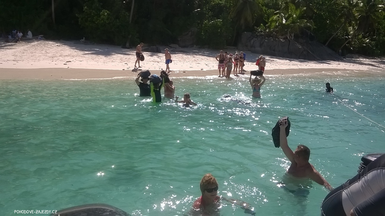- 9. den: snídaně, odjezd lodí na fakultativní výlet do nejstarší mořské rezervace na Seychelách SAINTE ANNE MARINE NATIONAL PARK. V oblasti o rozloze 3,8 km2 jsou vynikající podmínky pro potápění a šnorchlování. Při troše štěstí můžeme zahlédnout rejnoky, mořské želvy a delfíny skákavé. Poplujeme mezi a okolo šesti ostrovy Moyenne, Roun, Long, Cerf, Cachee a Sainte Anne Island. Na jednom ostrově zastavíme na oběd a relax na pláži, poté přejedeme na ostrov Cerf, kde navštívíme místní muzeum, odpočineme si ve stínu tropického pralesa, shlédneme místní želvy aldabra. Večer návrat do zpět na Mahé.