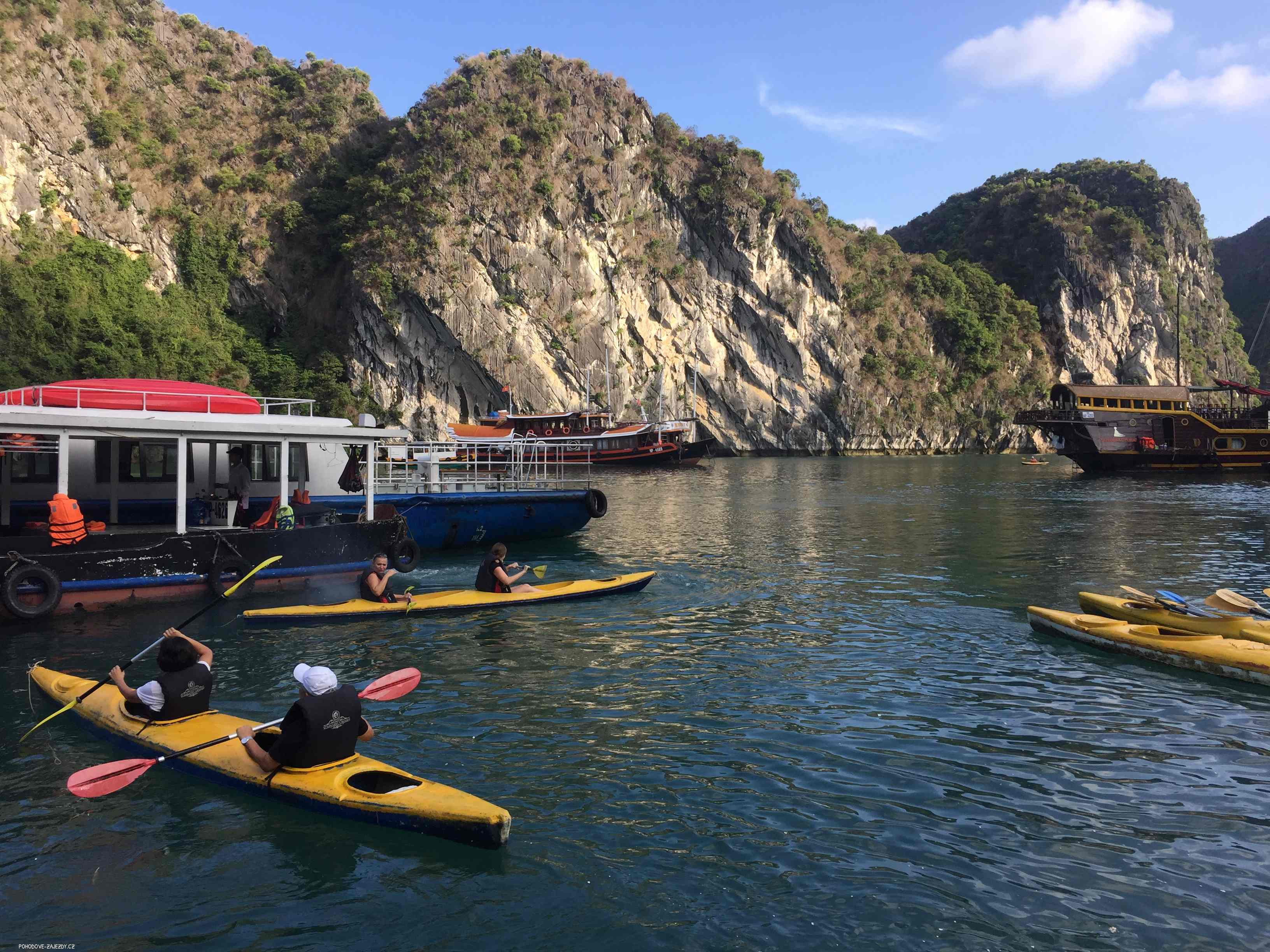 - den: snídaně, odjezd na plavbu po zátoce Lan Ha. Zastavíme u plovoucí rybářské vesnice, půjčíme se kajaky a prozkoumáme místní ostrůvky, zaplaveme si v moři. (dle velikosti vln)