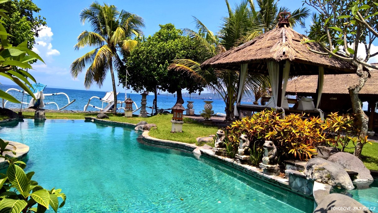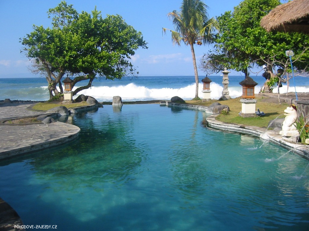 - 3. den: snídaně, pobyt u bazénu, koupání v moři, procházka po pobřeží, relaxace, odpoledne pěšky do města CANDIDASA, návštěva místního chrámu u lotosového jezera uprostřed města.