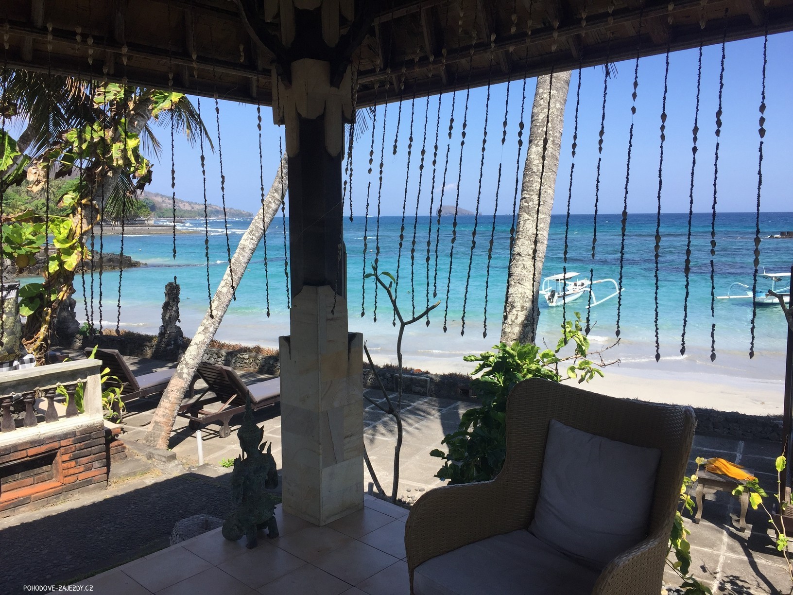 - 5. den: po snídani odjedeme do přístavu PADANG BAI a procházkou si dojdeme na pláž BLUE LAGOON, kde strávíme část dne na nejkrásnější pláži ostrova s bělostným pískem, bez davu turistů, možnost šnorchlování v průzračné vodě. Při návratu zastávka u moře s černými písky a s chrámem GOA LAWAH (netopýří jeskyně). Navečer přejezd na ubytování, večeře.