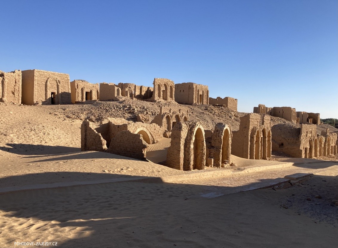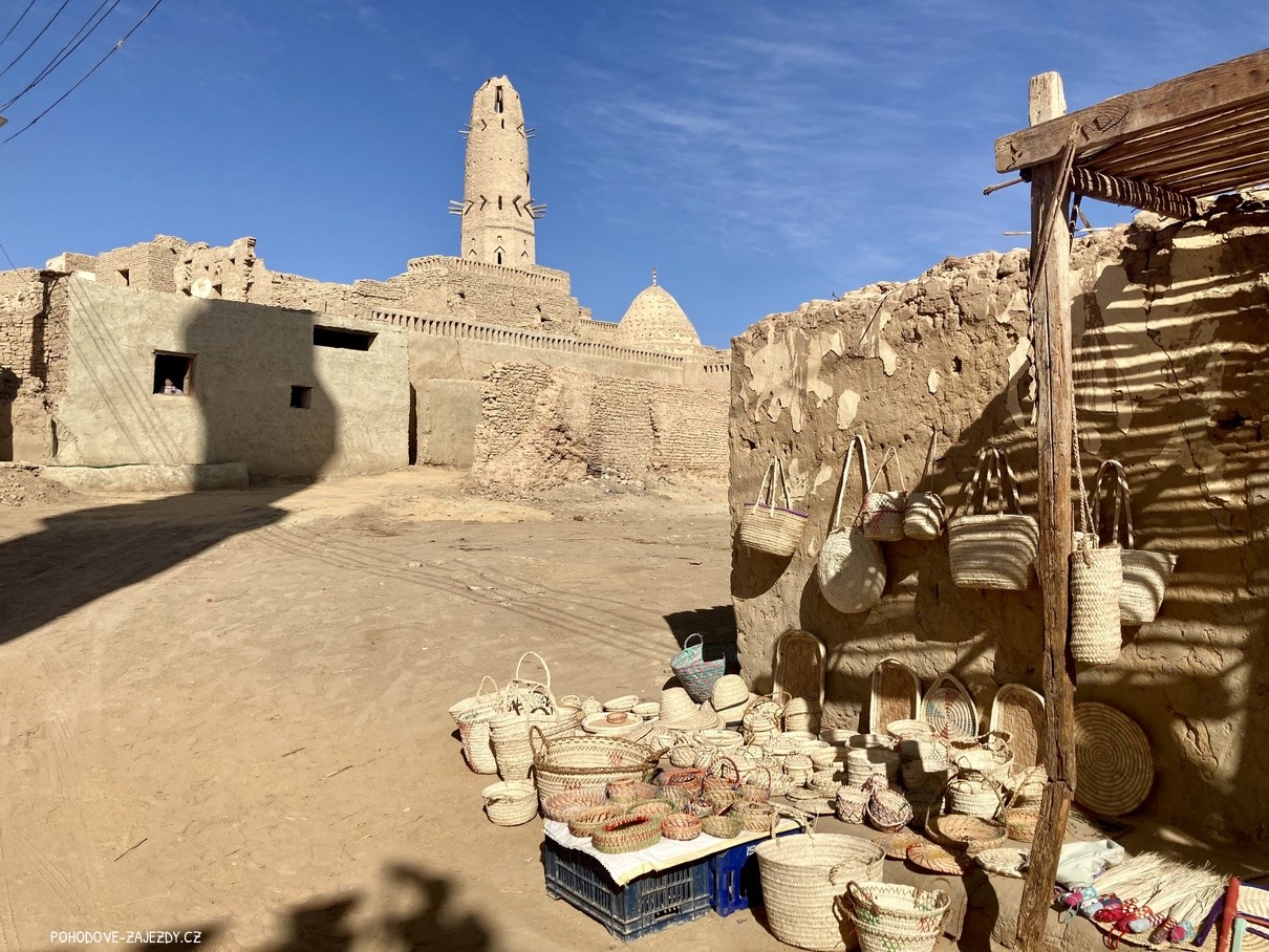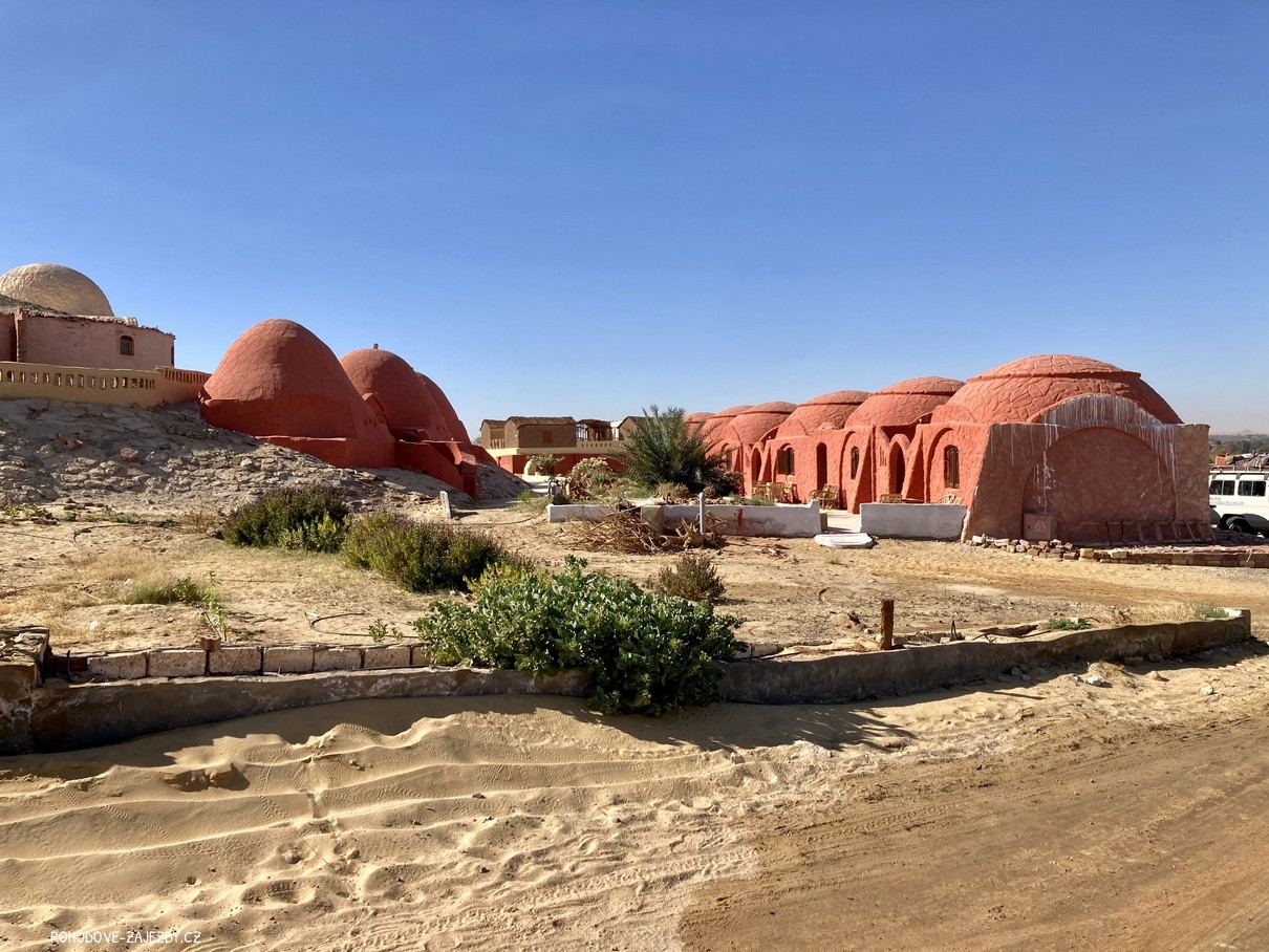 - den: po snídani, možnost fakultativně navštívit Muzeum New Valley, kde se nachází historické předměty předměty nalezené zejména v okolí oáz Kharga a Dachla. Poté odjezd do oázy Dachla, ubytování v beduínském kempu. Chvíle na relax, návštěva nedalekého starého islámského hliněného města Qasr. Historické centrum Al-Qasr leží na úpatí růžových vápencových útesů na okraji svěží oázy a je hlavní atrakcí oázy Dakhla. Labyrint křivolakých uliček, středověké domy z nepálených cihel, medresa z 10. století, mešita z 12. století s třípatrovým minaretem a různé dílny si dokázaly zachovat své historické kouzlo, nechte se jím učarovat i vy. Po cestě zpět bude možnost svlažit se v horkých pramenech. Večeře.