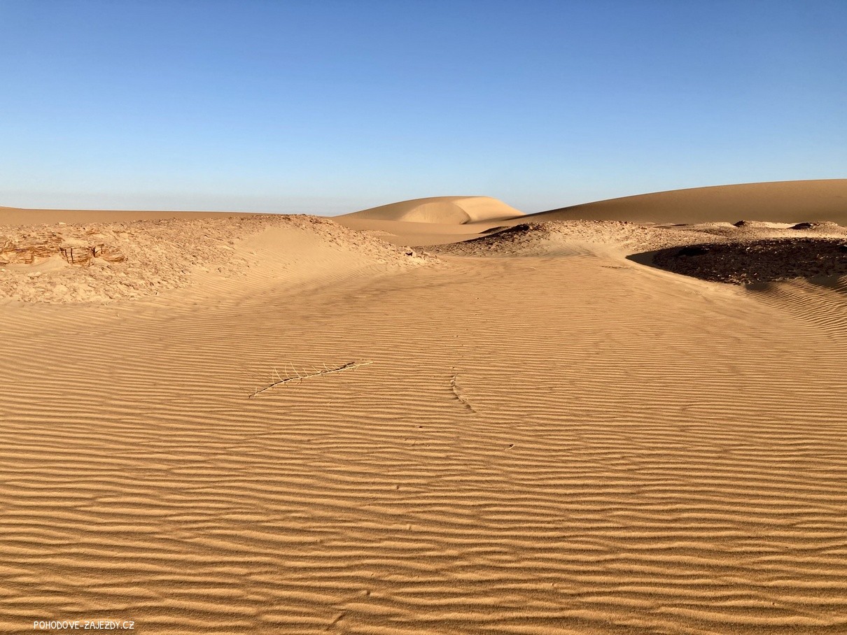 - den: po snídani začně naše offroadová cesta do hlubin pouště. Pojedeme přes menší i větší písečné duny, shlédneme rozmanité skalní útvary a zde v absolutním tichu, které poušť poskýtá si dáme lehký oběd a lahodný čaj. Při západu slunce se budeme vracet zpět do beduínského kempu.