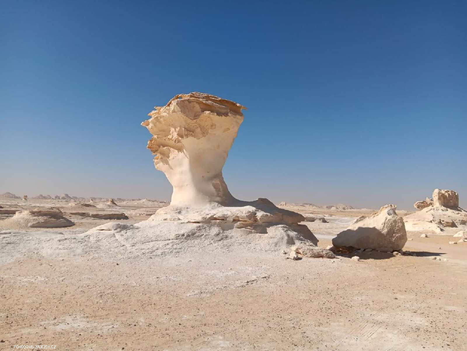 - den: po snídani nás čeká odjezd do naprosto unikátní a jedinečné Bílé pouště. Toto velkolepé místo se svými oslnivě bílými útvary, které příroda utvářela stovky a tisíce let, vypadá jako na jiné planetě. Mezi bílými hřibovitými útvary z vápence si dáme oběd, nafotíme bílou krásu a cestou do oázy Baharija se zastavíme u vyhlášené Křišťálové hory tvořené třpytivými trsy křemene. Poté míříme do Černé pouště s mnoha malými i většími kopci vulkanického původu. Ubytování a večeře v beduínském kempu.